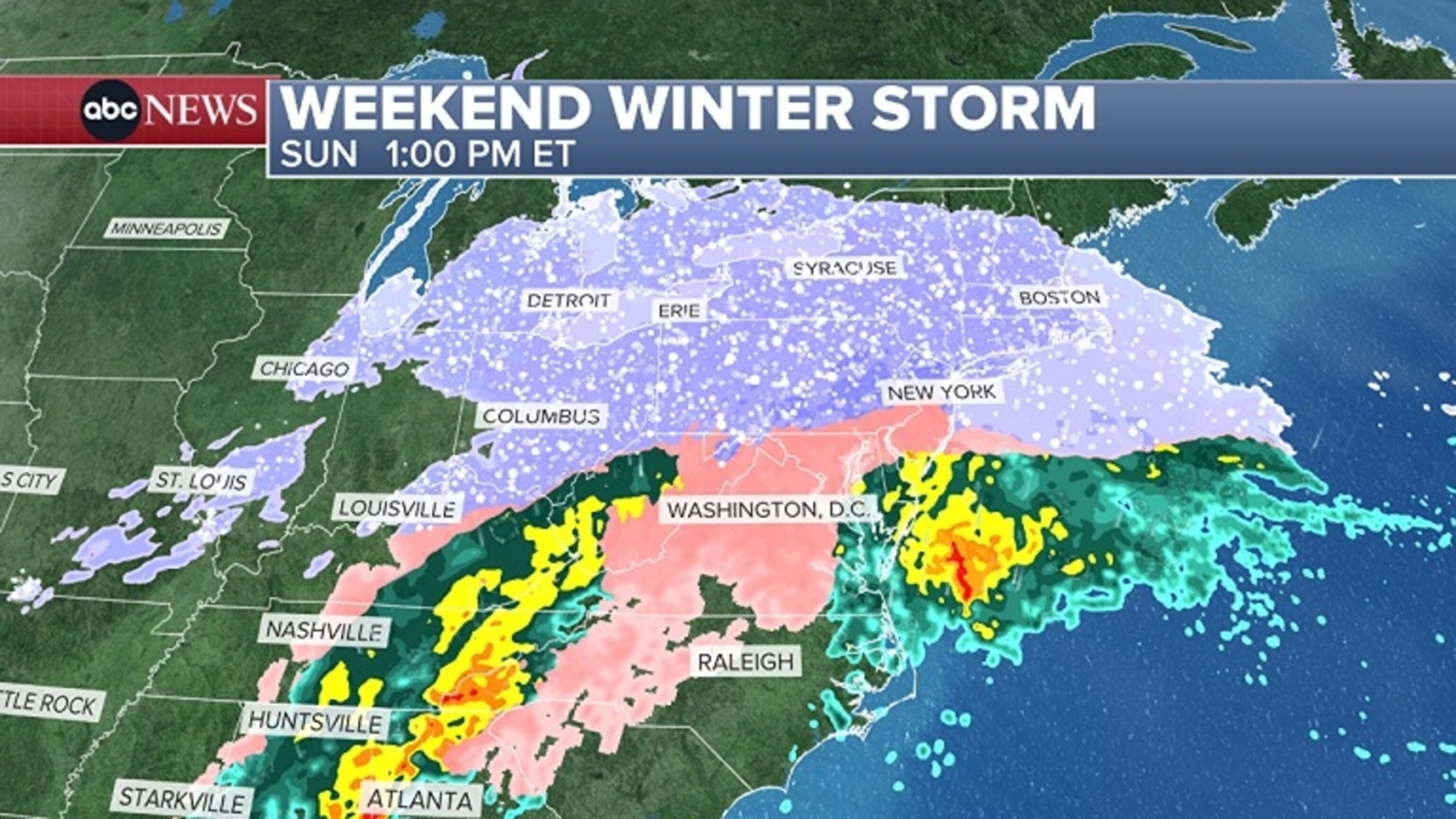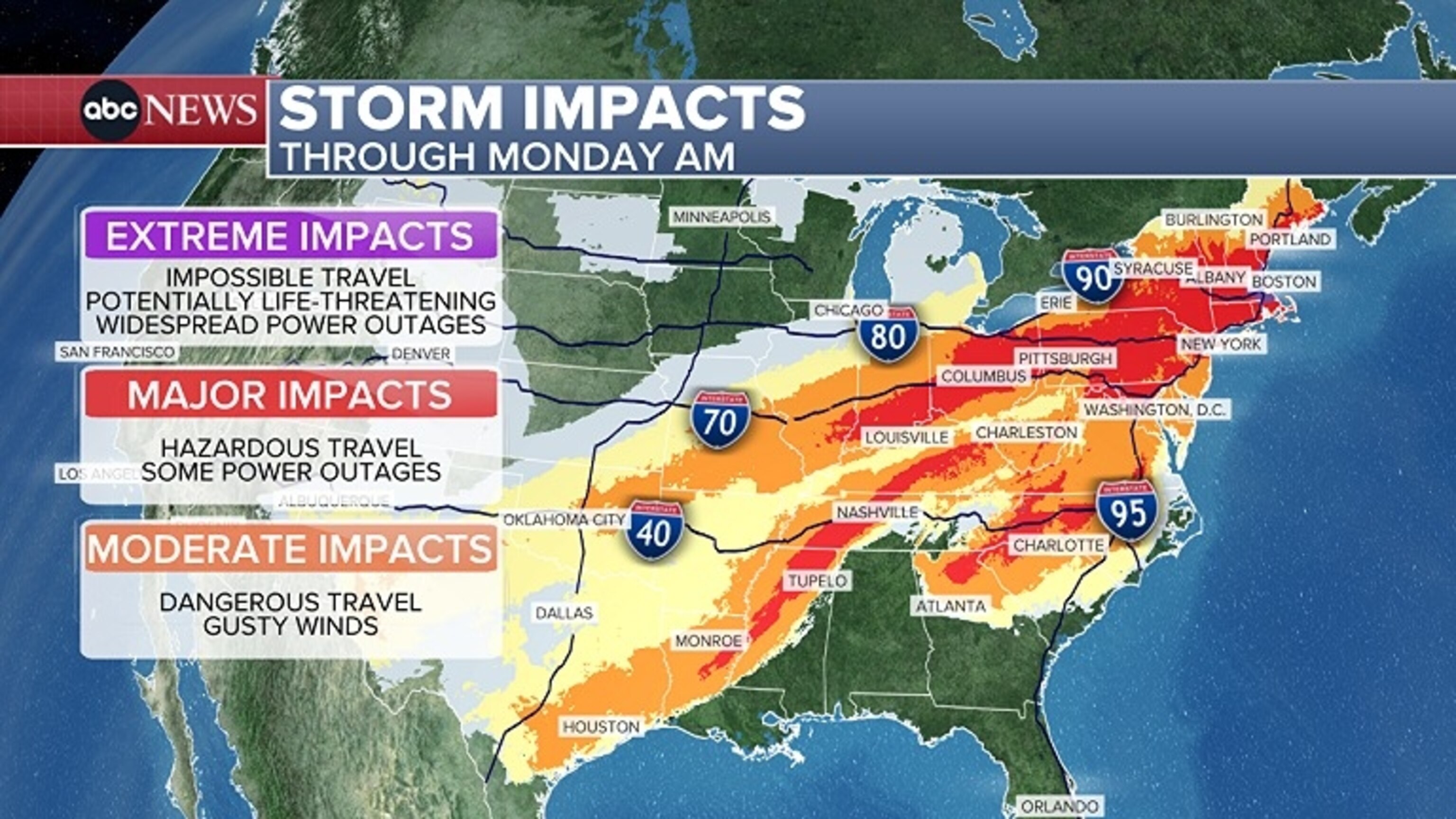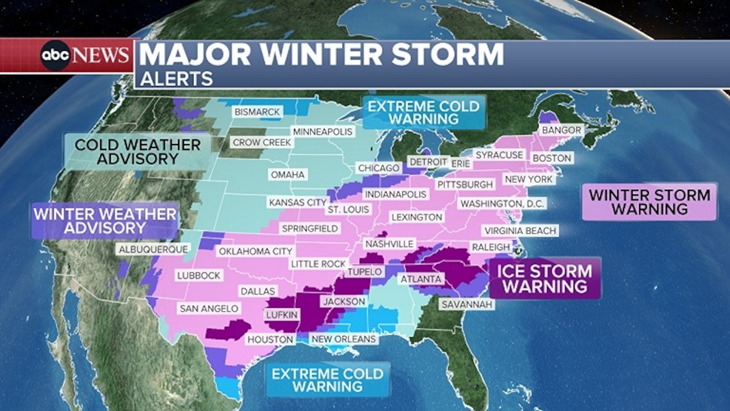 This ABC News graphic shows the winter storm forecast.